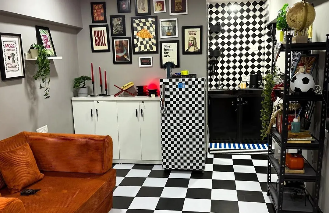 Zu den Einrichtungen für Selbstversorger gehört eine komplette Küche. Das Shes Garage A Retro Studio In Bandra ist nicht weit entfernt von der Bushaltestelle Dandpada.